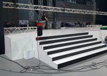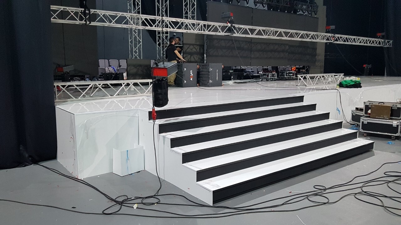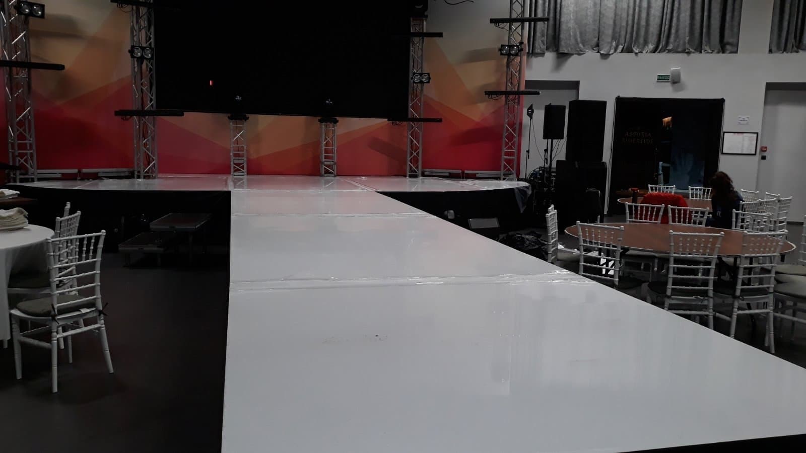 Пластиковые материалы востребованы при покрытии подиумов, изготовления юбки сцены, при обшивке торцов лестниц и лестничных проемов, настила пластика на пол площадок. Вы можете выбрать любой цвет покрытия. Решение отлично подойдет как для официальных мероприятий, так и для частных.